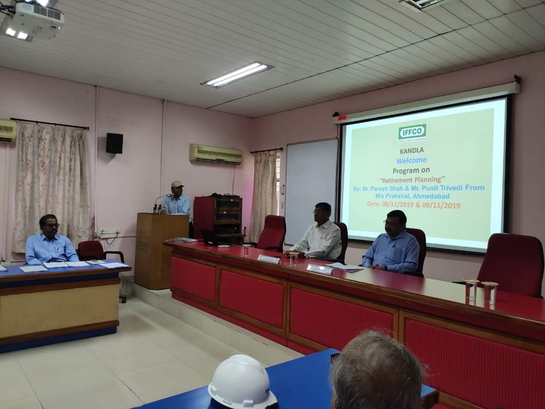Conducting a workshop entitled “Financial Planning for Happy Retired Life” for Senior Executives and Managers of IFFCO as sequence of workshops now at IFFCO, Kandla; after IFFCO, Kalol.