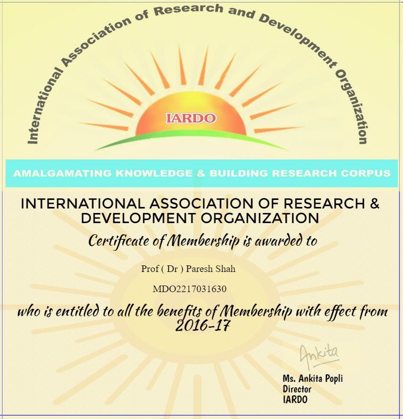 Feeling happy awarded to me : Membership of International Association of Research & Development Organization